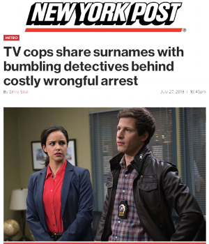 The New York Post reported that two of the arresting officers coincidentally shared names with characters from Brooklyn Nine Nine, a Fox comedy series about a fictitious Brooklyn detective squad. “Jake and Amy would not approve,” David told the Post, referring to the TV comedy detectives who somehow show more professionalism than their real-life namesakes. “A group of New York City police officers arrested three young men for a crime they knew they did not commit . . . That wouldn’t be funny if it happened on a TV show.”
