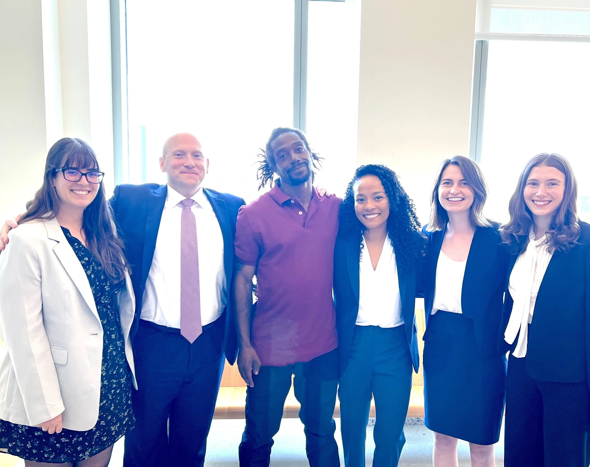 From left to right: Summer Associate Haley Talati (Columbia Law School), David Shanies, James Irons, Deborah Francois, and Summer Associates Lindsay Campbell (NYU Law School) and Cara Eisenstein (NYU Law School)